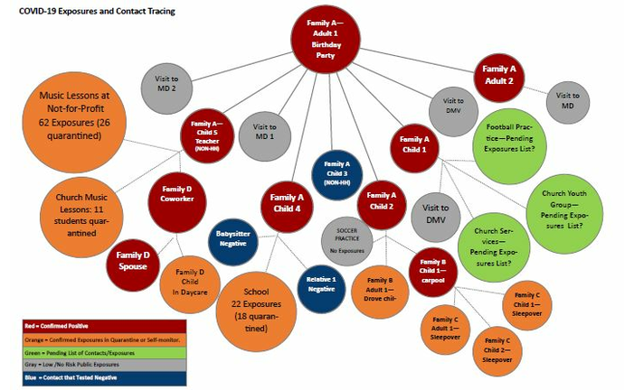 The county says the virus spread among members of the same family because after a male adult got sick he continued his normal routine, including being an assistant football coach and a member of a church group. He even held a birthday party for his child.