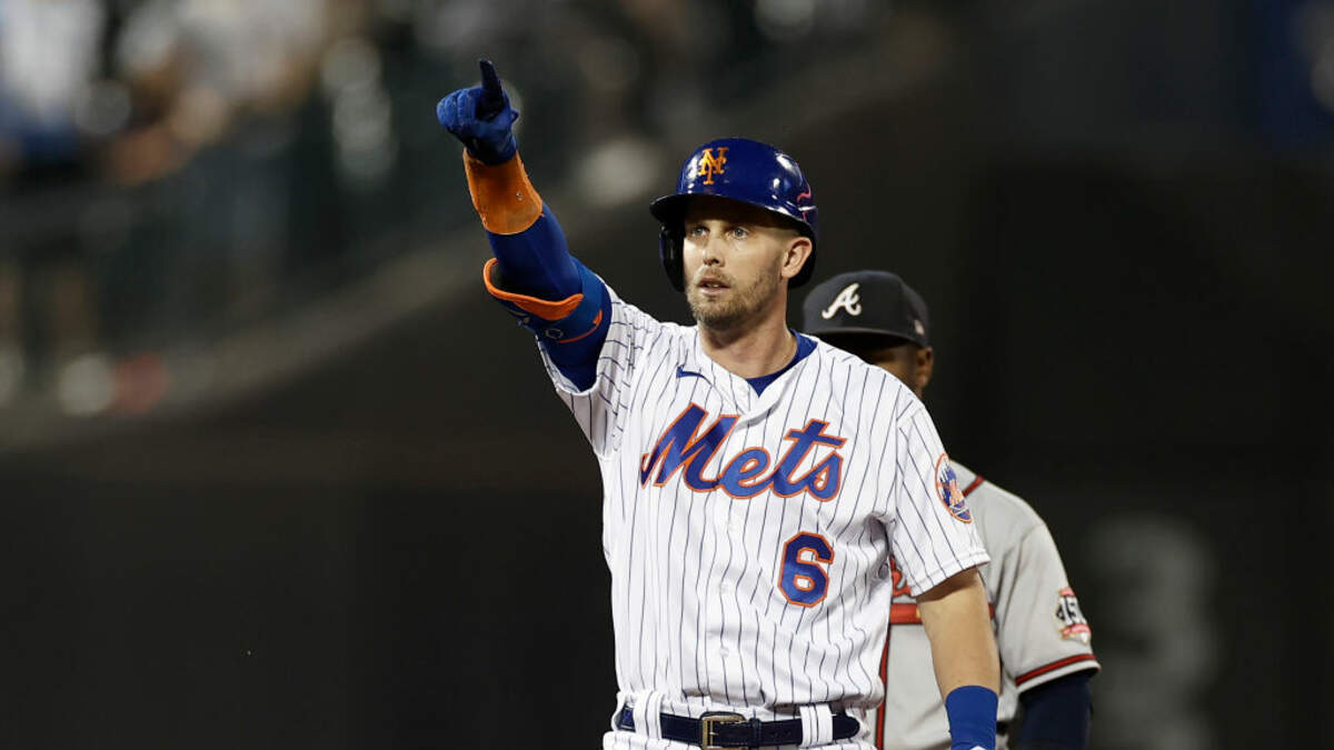 NEW YORK, NY - JULY 26: Jeff McNeil #6 of the New York Mets reacts on second base after hitting an RBI double in the fifth inning against the Atlanta Braves during game two of a doubleheader at Citi Field on July 26, 2021 in New York City. (Getty)
