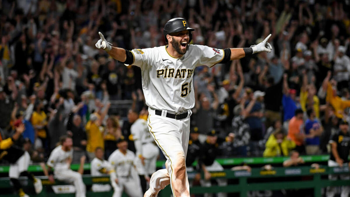PITTSBURGH, PA - JULY 17: Jacob Stallings #58 of the Pittsburgh Pirates reacts as he rounds the bases after hitting a walk-off grand slam home run to give the Pirates a 9-7 win over the New York Mets during the game at PNC Park on July 17, 2021 in PittsburghPhoto: Getty Images North America