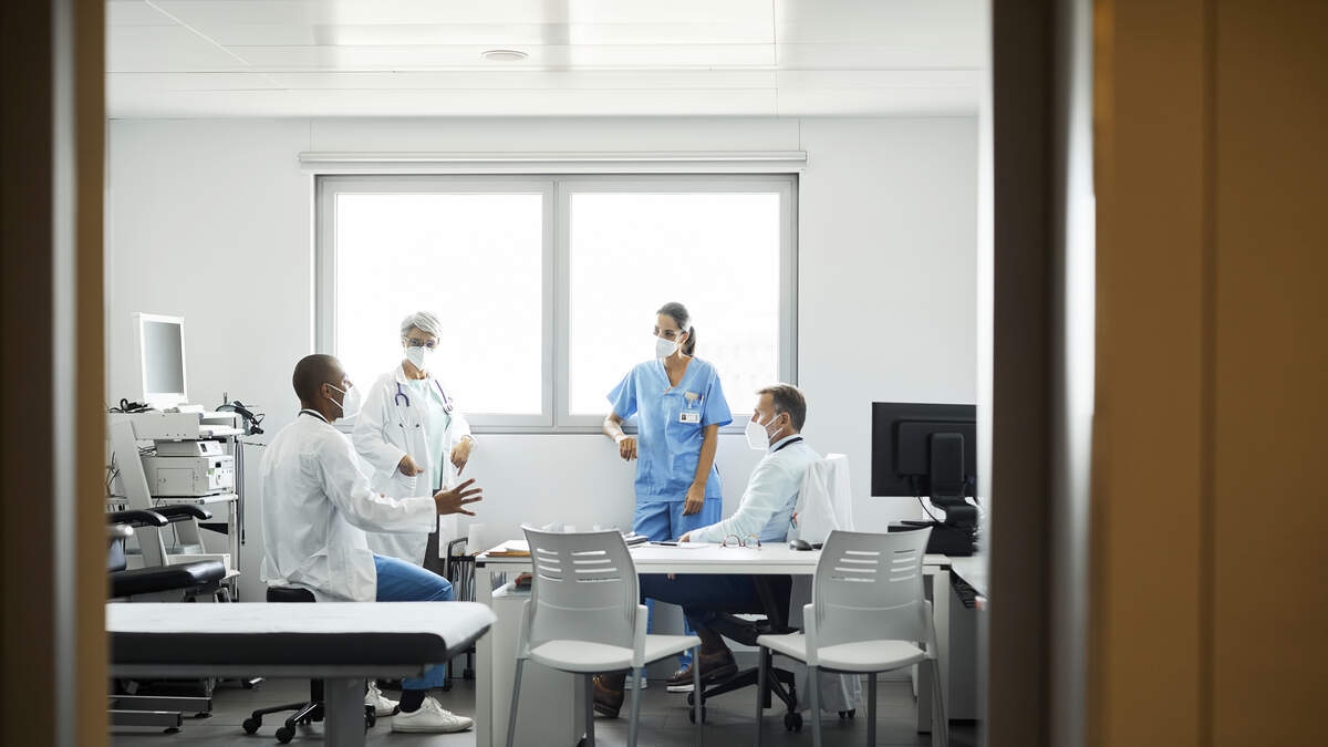 Healthcare professionals discussing in hospital