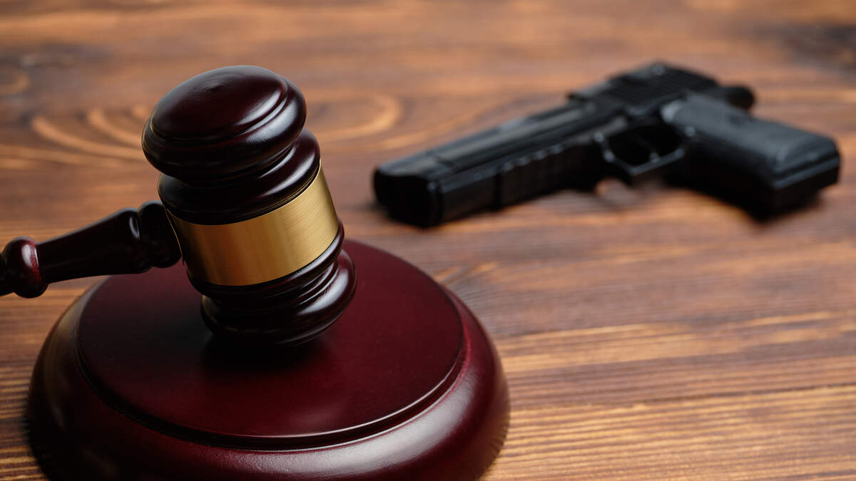 Judge hammer on a background of the gun as a concept court sentence for murder